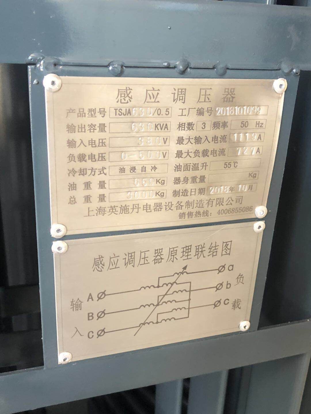 >規(guī)格參數(shù) 油浸式感應(yīng)調(diào)壓器TSJA.[功率50~1500KVA]、[電壓范圍0-180V,0-380v,0-420v,0-500v,0-650v,0-900v,0-1200v等等,]特殊產(chǎn)品特殊設(shè)計。調(diào)壓器主要用于電機試驗,變壓器試驗.電爐控溫等。   感應(yīng)調(diào)壓器能在帶負荷情況下,無級、平滑、連續(xù)地調(diào)節(jié)輸出電壓。主要用于電機電器試驗、電爐控溫、整流設(shè)備配套、發(fā)電機勵磁等,在機械制造、化工、紡織、通訊、軍工等行業(yè)得到廣泛應(yīng)用。   TSJA型油浸式調(diào)壓器采用斜槽新工藝,波形好,達到IEC 標準對電器試驗電源的 要求,該系列產(chǎn)品可平滑、無級地調(diào)節(jié)負載電壓,輸出電壓波形畸變小,壽命長、運行可靠 ,使用、維護方便、損耗低、過載能力強,具有兩種調(diào)壓速度,是電機、變壓器和其他電器 最理想的可調(diào)電源。以下為我司生產(chǎn)的TSJA/TDJA系列三相/單相感應(yīng)式調(diào)壓器常見部分產(chǎn)品,公司主要專業(yè)從事生產(chǎn)(10KVA-3150KVA)之間感應(yīng)調(diào)壓器,另有特殊規(guī)格歡迎垂詢英施丹客服訂做  >產(chǎn)品特征 | 產(chǎn)品型號 | 容量(kva) | 相數(shù) | 頻率(HZ) | 輸入電壓(v) | 輸出電壓(v) | 最大輸出電流(A) |  | TSA30/0。5 | 30 | 3 | 50 | 380 | 0-380 | 46 |  | TSA30/0。5 | 30 | 3 | 50 | 380 | 0-420 | 42 |  | TSA30/0。5 | 30 | 3 | 50 | 380 | 0-500 | 35 |  | TSA30/0。5 | 30 | 3 | 50 | 380 | 0-650 | 27 |  | TSA50/0。5 | 50 | 3 | 50 | 380 | 0-380 | 76 |  | TSA50/0。5 | 50 | 3 | 50 | 380 | 0-420 | 69 |  | TSA50/0。5 | 50 | 3 | 50 | 380 | 0-500 | 58 |  | TSA50/0。5 | 50 | 3 | 50 | 380 | 0-650 | 44 |  | TSA75/0。5 | 75 | 3 | 50 | 380 | 0-380 | 114 |  | TSA75/0。5 | 75 | 3 | 50 | 380 | 0-420 | 103 |  | TSA75/0。5 | 75 | 3 | 50 | 380 | 0-500 | 87 |  | TSA75/0。5 | 75 | 3 | 50 | 380 | 0-650 | 67 |  | TSA100/0。5 | 100 | 3 | 50 | 380 | 0-380 | 152 |  | TSA100/0。5 | 100 | 3 | 50 | 380 | 0-420 | 138 |  | TSA100/0。5 | 100 | 3 | 50 | 380 | 0-500 | 116 |  | TSA100/0。5 | 100 | 3 | 50 | 380 | 0-650 | 89 |  | TSA150/0。5 | 150 | 3 | 50 | 380 | 0-380 | 228 |  | TSA150/0。5 | 150 | 3 | 50 | 380 | 0-420 | 206 |  | TSA150/0。5 | 150 | 3 | 50 | 380 | 0-500 | 173 |  | TSA150/0。5 | 150 | 3 | 50 | 380 | 0-650 | 133 |  | TSA200/0。5 | 200 | 3 | 50 | 380 | 0-380 | 304 |  | TSA200/0。5 | 200 | 3 | 50 | 380 | 0-420 | 275 |  | TSA200/0。5 | 200 | 3 | 50 | 380 | 0-500 | 231 |  | TSA200/0。5 | 200 | 3 | 50 | 380 | 0-650 | 178 |  | TSA250/0。5 | 250 | 3 | 50 | 380 | 0-380 | 380 |  | TSA250/0。5 | 250 | 3 | 50 | 380 | 0-420 | 344 |  | TSA250/0。5 | 250 | 3 | 50 | 380 | 0-500 | 289 |  | TSA250/0。5 | 250 | 3 | 50 | 380 | 0-650 | 222 |  | TSA300/0。5 | 300 | 3 | 50 | 380 | 0-380 | 456 |  | TSA300/0。5 | 300 | 3 | 50 | 380 | 0-420 | 413 |  | TSA300/0。5 | 300 | 3 | 50 | 380 | 0-500 | 347 |  | TSA300/0。5 | 300 | 3 | 50 | 380 | 0-650 | 237 |  | TSA350/0。5 | 350 | 3 | 50 | 380 | 0-380 | 532 |  | TSA350/0。5 | 350 | 3 | 50 | 380 | 0-420 | 482 |  | TSA350/0。5 | 350 | 3 | 50 | 380 | 0-500 | 405 |  | TSA350/0。5 | 350 | 3 | 50 | 380 | 0-650 | 311 |  | TSA400/0。5 | 400 | 3 | 50 | 380 | 0-380 | 608 |  | TSA400/0。5 | 400 | 3 | 50 | 380 | 0-500 | 462 |  | TSA400/0。5 | 400 | 3 | 50 | 380 | 0-650 | 356 |  | TSA500/0。5 | 500 | 3 | 50 | 380 | 0-500 | 578 |  | TSA630/0。5 | 630 | 3 | 50 | 380 | 0-500 | 728 |  | TSA750/0。5 | 750 | 3 | 50 | 380 | 0-500 | 867 |  | TSA800/0。5 | 800 | 3 | 50 | 380 | 0-500 | 925 |  | TSA1000/0。5 | 1000 | 3 | 50 | 380 | 0-500 | 1156 |  | TSA1250/0。5 | 1250 | 3 | 50 | 380 | 0-500 | 1445 |  | TSA1600/0。5 | 1600 | 3 | 50 | 380 | 0-500 | 1850 |