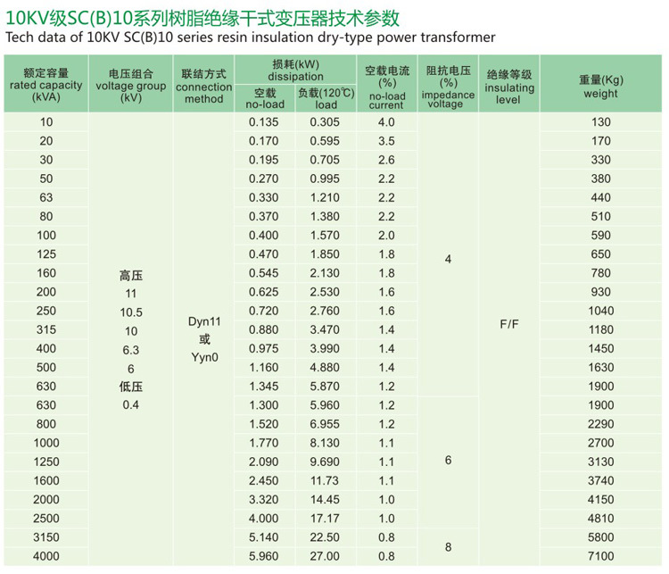 SCB10-100/10,SCB10-125/10 SCB10-160/10,SCB10-200/10,SCB10-250/10,SCB10-315/10,SCB10-400/10,SCB10-500/10 SCB10-630/10,SCB10-800/10,SCB10-1000/10,SCB10-1250/10,SCB10-1600/10 SCB10-2000/10,SCB10-2500/10 SCB10-3000/10SCB10變壓器執(zhí)行標(biāo)準(zhǔn): 1.GB1094.11—2007干式電力變壓器 2.GB/T10228—2008干式電力變壓器技術(shù)參數(shù)和要求 3.GB/T17211—1998干式電力變壓器負(fù)載導(dǎo)則 4.GBl094.10—2003電力變壓器第3部分:絕緣水平、絕緣試驗和外絕緣空氣間隙 5.JB/T10008—2004 6、500kV級變壓器聲級 6.JB/T56009—1998干式電力變壓器產(chǎn)品質(zhì)量分等