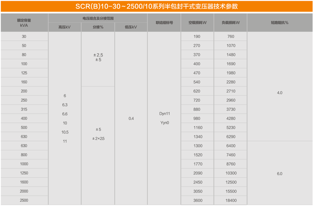 產(chǎn)品特點(diǎn)• 防塵、防潮:外表噴涂專用防水材料,形成防塵、防潮、防污染的特殊保護(hù)層。 • 體積小,重量輕:采用杜邦NOMEX紙為主絕緣材料,與同等容量的環(huán)氧澆注式變壓器相比,體積和重量減少20%。 • 散熱能力強(qiáng)::多層圓筒式、縱向多氣道結(jié)構(gòu),與環(huán)氧澆注式變壓器相比散熱效果更優(yōu)。 • 環(huán)保:可靠,無(wú)助燃性樹(shù)脂,無(wú)毒,可以分解回收,不污染環(huán)境。 使用條件海拔≤1000m,-25℃≤環(huán)境溫度≤40℃,戶內(nèi)式。對(duì)空氣自冷與強(qiáng)迫風(fēng)冷的變壓器,均需保證變壓器具有良好的通風(fēng)能力。當(dāng)變壓器安裝在地下室或其他通風(fēng)能力較差的環(huán)境,須增設(shè)散熱通風(fēng)裝置。保護(hù)等級(jí)有IP00、IP20、IP23等型式。當(dāng)海拔>1000米時(shí)或是環(huán)境溫度大于40℃或者小于-25℃時(shí),產(chǎn)品須按照GB1094.11《電力變壓器第11部分:干式變壓器》的要求對(duì)有關(guān)額定值作相應(yīng)調(diào)整。 技術(shù)參數(shù)