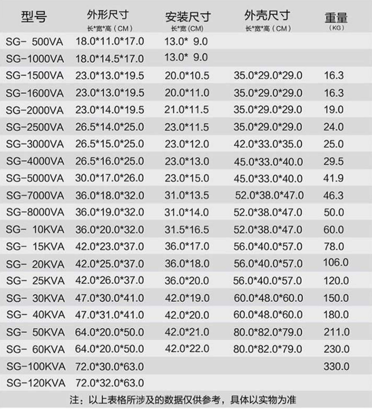 SG三相干式伺服隔離變壓器產(chǎn)品概述 我公司多年來采用優(yōu)質(zhì)材料和工藝技術(shù)專業(yè)生產(chǎn)160V到3000KVA之間,SG系列三相干式伺服隔離變壓器,尤其160VA-3000KVA之間的SG三相干式伺服隔離變壓器,它們的外形和安裝尺寸已經(jīng)標(biāo)準(zhǔn)化,產(chǎn)品符合VDE0550、IEC439、JB5555、GB226等標(biāo)準(zhǔn)。 SG三相干式伺服隔離變壓器適用于50~60Hz,輸入、輸出電壓不超過3300V的各種三相供電場(chǎng)合,產(chǎn)品的各種輸入、輸出的電壓高低、聯(lián)接組別、調(diào)節(jié)抽頭的多少及位置(一般為±5%)、繞組容量的分配、次級(jí)單相繞組的配備、整流電路的運(yùn)用、是否要求帶外殼等,均可根據(jù)用戶的要求進(jìn)行精心的設(shè)計(jì)與制造。ZSG系列三相干式整流變壓器供整流設(shè)備、整流后作充電、電壓調(diào)節(jié)及直流電源之用。 SG三相干式伺服隔離變壓器相關(guān)參數(shù)如下 額定容量:1kVA~3000kVA; 額定電壓:1140V、660V、480V、460V、415V、380V、220V、208V、200V、110V等; 額定頻率:50Hz、60Hz; 聯(lián)結(jié)組別:Y,yn0、Y,d11、D,yn11等; 防護(hù)等級(jí):IP00、IP20、IP62; 絕緣等級(jí):B級(jí)、F級(jí)、H級(jí); SG三相干式伺服隔離變壓器結(jié)構(gòu)特征 SG三相干式伺服隔離變壓器的鐵心采用優(yōu)質(zhì)冷軋硅鋼片疊制而成,根據(jù)絕緣等級(jí)的不同,整體浸漬不同絕緣等級(jí)的絕緣漆,能有效降低變壓器噪聲,減少鹽霧,霉菌等對(duì)變壓器的影響。根據(jù)防護(hù)等級(jí)的不同,變壓器箱體由優(yōu)質(zhì)鋼板制成,結(jié)構(gòu)上既充分考慮空氣流通,又能有效地起到防護(hù)作用,變壓器接線電纜也很方便連接,設(shè)計(jì)充滿人性化。可根據(jù)用戶要求安裝電壓電流表、電源指示燈、塑殼斷路器等。 SG三相干式伺服隔離變壓器訂貨須知 產(chǎn)品型號(hào)、額定容量、額定電壓、聯(lián)結(jié)組別、工作方式、絕緣等級(jí)、防護(hù)等級(jí)、其它特殊要求在技術(shù)協(xié)議中再行規(guī)定。 二.結(jié)構(gòu)特點(diǎn); 1.優(yōu)質(zhì)全新冷軋有取向硅鋼片疊裝;H級(jí)耐溫180°漆包線,裸線圈繞組美觀大方,初級(jí)次級(jí)加風(fēng)道扇熱快,鍍鋅腳架, 2.采用特殊浸漆工藝處理,真空浸漆,烘箱干燥!有效降低了運(yùn)行時(shí)的震動(dòng)和噪聲,增加電氣強(qiáng)度, 3.采用耐高溫的絕緣材料設(shè)計(jì)等新工藝、新技術(shù)的引入,使變壓器更加節(jié)能、更加寧靜。節(jié)能低噪線圈留有 通風(fēng)槽,空氣流動(dòng)暢通,迅速有效降低線圈溫度。 特性優(yōu)點(diǎn): 高度隔離 N-G性能良好 高度共模干擾抑制 將△轉(zhuǎn)換為Y或Y至△ 電壓抽頭容易轉(zhuǎn)換 按用戶的特殊性能要求設(shè)計(jì) 隔離變壓器加裝在穩(wěn)壓電源的典型應(yīng)用 一、在電源輸入端接入隔離變壓器(三角/星形) 1、若電網(wǎng)三次諧波和干擾信號(hào)比較嚴(yán)重,采用△/Yo隔離變壓器,可以去掉三次諧波和減少干擾信號(hào)。 2、可以采用△/Yo隔離變壓器產(chǎn)生新的中性線,使設(shè)備與電網(wǎng)中性線無關(guān),避免由于電網(wǎng)中性線不良造成設(shè)備運(yùn)行不正常。 3、非線性負(fù)載引起的電流波形畸變(如三次諧波)可被隔離而不污染電網(wǎng)。 二、在電源輸出端接入隔離變壓器(星形/三角) 1、防止非線性負(fù)載的電流畸變,影響到穩(wěn)壓電源的正常工作及反回到電網(wǎng),起到凈化電網(wǎng)的作用。 2、非線性負(fù)載電流的畸變影響取樣的準(zhǔn)確性,可以在Yo/△隔離變壓器輸入端采樣,得到能反應(yīng)實(shí)際情況的控制信號(hào),使穩(wěn)壓電源控制正常。 3、若負(fù)載不平衡,采用Yo/△也不影響穩(wěn)壓電源的正常工作。