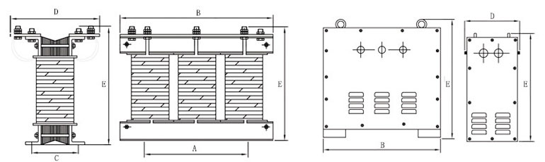 二、型號(hào)及其含義 三、外型及安裝尺寸 | 型號(hào) | 外形尺寸(開啟式) | 安裝孔距 | 外形尺寸(防護(hù)式) 英施丹集團(tuán) | | B × D × E | A × C | B × D × E 英施丹集團(tuán) | | SG/SBK-1KVA | 200×150×210 | 180×120 | 310×280×300 英施丹集團(tuán) | | SG/SBK-1.5KVA | 240×150×230 | 180×120 | 350×300×360 英施丹集團(tuán) | | SG/SBK-2KVA | 240×160×230 | 180×150 | 350×300×360 英施丹集團(tuán) | | SG/SBK-3KVA | 250×180×230 | 180×170 | 350×300×360 英施丹集團(tuán) | | SG/SBK-4KVA | 300×180×280 | 220×180 | 400×350×410 英施丹集團(tuán) | | SG/SBK-5KVA | 300×200×280 | 220×200 | 400×350×410 英施丹集團(tuán) | | SG/SBK-7KVA | 380×200×350 | 280×180 | 500×400×480 英施丹集團(tuán) | | SG/SBK-8KVA | 380×220×350 | 280×190 | 500×400×480 英施丹集團(tuán) | | SG/SBK-10KVA | 380×240×350 | 280×220 | 500×400×480 英施丹集團(tuán) | | SG/SBK-15KVA | 420×220×400 | 280×220 | 600×500×580 英施丹集團(tuán) | | SG/SBK-20KVA | 420×240×410 | 280×260 | 600×500×580 英施丹集團(tuán) | | SG/SBK-30KVA | 480×260×460 | 320×260 | 600×500×580 英施丹集團(tuán) | | SG/SBK-40KVA | 530×320×500 | 320×280 | 750×600×720 英施丹集團(tuán) | | SG/SBK-50KVA | 530×350×520 | 450×260 | 750×600×720 英施丹集團(tuán) | | SG/SBK-80KVA | 630×400×580 | 450×280 | 850×650×820 英施丹集團(tuán) | | SG/SBK-100KVA | 720×500×650 | 550×350 | 950×700×850 英施丹集團(tuán) | | SG/SBK-200KVA | 850×550×700 | 600×400 | 1100×800×1000 英施丹集團(tuán) | | SG/SBK-300KVA | 1000×650×800 | 680×420 | 1200×800×1100 英施丹集團(tuán) |