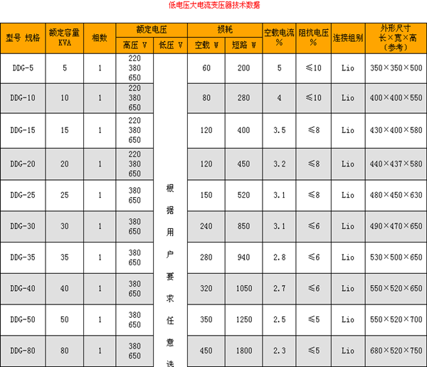 一、概述: 無論試驗、加熱,均需從電源電壓降壓以升流,使低壓電流達數(shù)千或萬余安培。本系列產(chǎn)品的高壓電壓一般為220伏、380伏和650伏,其低壓電壓由升流大小而不同,自成一個系列,供工礦企業(yè)采用。在采用本系列產(chǎn)品時,一般需要在電源前側(cè)加電壓調(diào)節(jié),使低壓側(cè)達到無級調(diào)節(jié)。 二、產(chǎn)品用途: 本系列適合于額定頻率為50HZ的開關(guān)、電流互感器、金剛石行業(yè)等電器設(shè)備的連續(xù)負載實驗及加熱作升流之用。