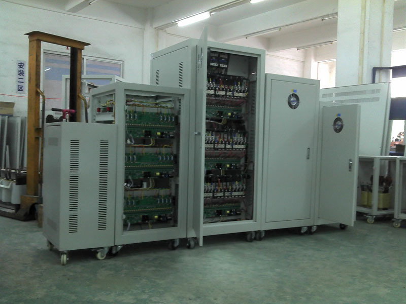 本文章由英施丹電器技術(shù)部:黃賀整理。 油式穩(wěn)壓器:油穩(wěn)壓器是有感應(yīng)調(diào)壓器組成也稱無觸點(diǎn)感應(yīng)式穩(wěn)壓器或智慧型無觸點(diǎn)三相穩(wěn)壓器。 優(yōu)點(diǎn): 1、無觸點(diǎn)、免維護(hù)、耐沖擊(特別瞬間沖擊,是正常的2倍。其原因是反應(yīng)慢,它是通過油冷卻,達(dá)到散熱的目的,但油冷卻是需要時(shí)間的) 2、功率大,售價(jià)低、總體穩(wěn)定性好、但使用成本高; 3、無環(huán)境干擾,可以在高溫或潮濕的環(huán)境下工作(在高低溫度下都可以正常工作); 缺點(diǎn): 1、損耗大,反應(yīng)速度慢 2、噪音大,60-80分貝; 3、有波形畸變1-3%左右; 4、不環(huán)保,體積大(因?yàn)橛褪椒(wěn)壓器損耗大,所損耗的電能絕大部分都轉(zhuǎn)化為熱量,這就要求油式穩(wěn)壓器要有很好的散熱效果,這也是油式穩(wěn)壓器體積大的原因),溫升高,不安全。 注:油式穩(wěn)壓器只限于60KVA以上(其實(shí)油式穩(wěn)壓器功率也可以做小,但它每KVA的成本就高相對干式穩(wěn)壓器就沒有競爭力)。油式穩(wěn)壓器適用于多粉塵、雜物、環(huán)境溫度高(70度以上)、要求有密封的地方如冶金行業(yè),沖壓行業(yè),家私行業(yè),玻璃行業(yè)等。 干式穩(wěn)壓器(D/SBW三相補(bǔ)償式穩(wěn)壓器,有統(tǒng)一的標(biāo)準(zhǔn),60KVA以上產(chǎn)品市場占有量達(dá)95%以上) 優(yōu)點(diǎn): 1、穩(wěn)壓范圍寬、穩(wěn)壓精度高、效率高、損耗小,不產(chǎn)生波形畸變、省電節(jié)能,壽命長; 2、體積小、環(huán)保,噪音。 3、當(dāng)輸入三相變壓器或負(fù)載電壓變化而造成電壓波動時(shí),能快速自動保持輸出電壓的穩(wěn)定,抗沖擊能力強(qiáng),能承受瞬間超載,可長期連續(xù)工作; 4、保護(hù)功能完善:過壓、欠壓、過流、過載、缺相、錯相、相序、短路、避雷、突波、機(jī)械故障等自動保護(hù)裝置齊全(以上功能可選擇); 5、輸入/輸出電壓同相位,手動/自動旁路切換,使用安裝方便,運(yùn)行安全可靠等優(yōu)點(diǎn); 6、技術(shù)嫻熟穩(wěn)定,可根據(jù)用戶要求訂做三相分調(diào)式、穩(wěn)變一體式。 缺點(diǎn): 1、需維護(hù),一般根據(jù)現(xiàn)場環(huán)境進(jìn)行半年至一年一次的保養(yǎng)維護(hù)。 2、耐短時(shí)沖擊能力和長期負(fù)載能力不及油式穩(wěn)壓器。 |